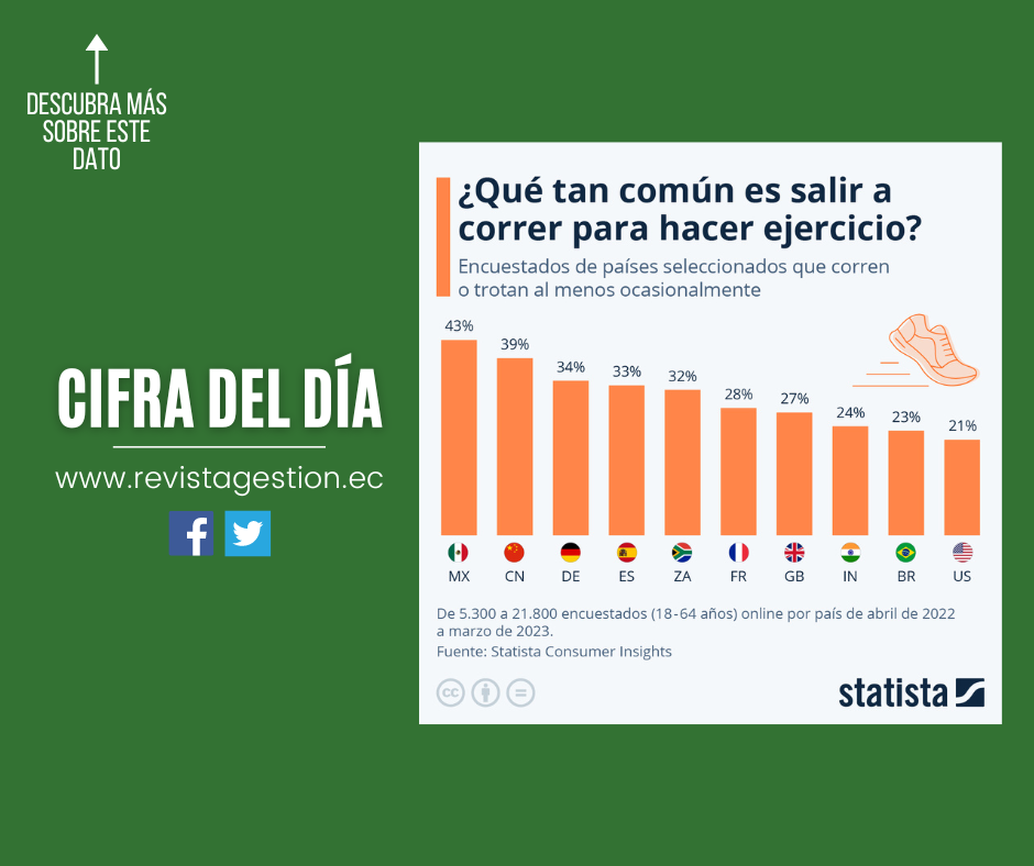Correr y trotar se han convertido en formas comunes de ejercicio y actividades de ocio en todo el mundo, como indican los datos recogidos por el Statista Consumer Insights, los cuales destacan los diferentes grados de prevalencia según el país.