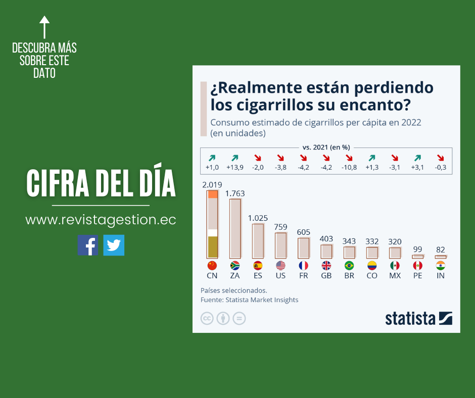 En Europa, los fumadores están apagando gradualmente sus colillas. En España, el número de cigarrillos per cápita disminuyó un 2%, frente a un descenso de más del 4% en Francia y el Reino Unido. Del otro lado del océano Atlántico, los estadounidenses también están disminuyendo su consumo, fumando un 3,8% menos que en 2021. En Latinoamérica, tanto Brasil como México, principales mercados de la región, registraron un declive en el consumo de cigarrillos, mientras que Colombia y Perú han experimentado un incremento desde la pandemia que, según las previsiones, seguirá en alza en el futuro.