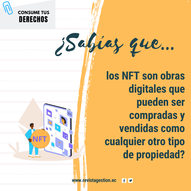Los NFT (token no fungible, por sus siglas en inglés) son obras digitales que pueden ser compradas y vendidas como cualquier otro tipo de propiedad, pero no tienen forma tangible. Una fotografía digital o un vídeo, por ejemplo, son piezas de arte que no existen en el mundo físico.