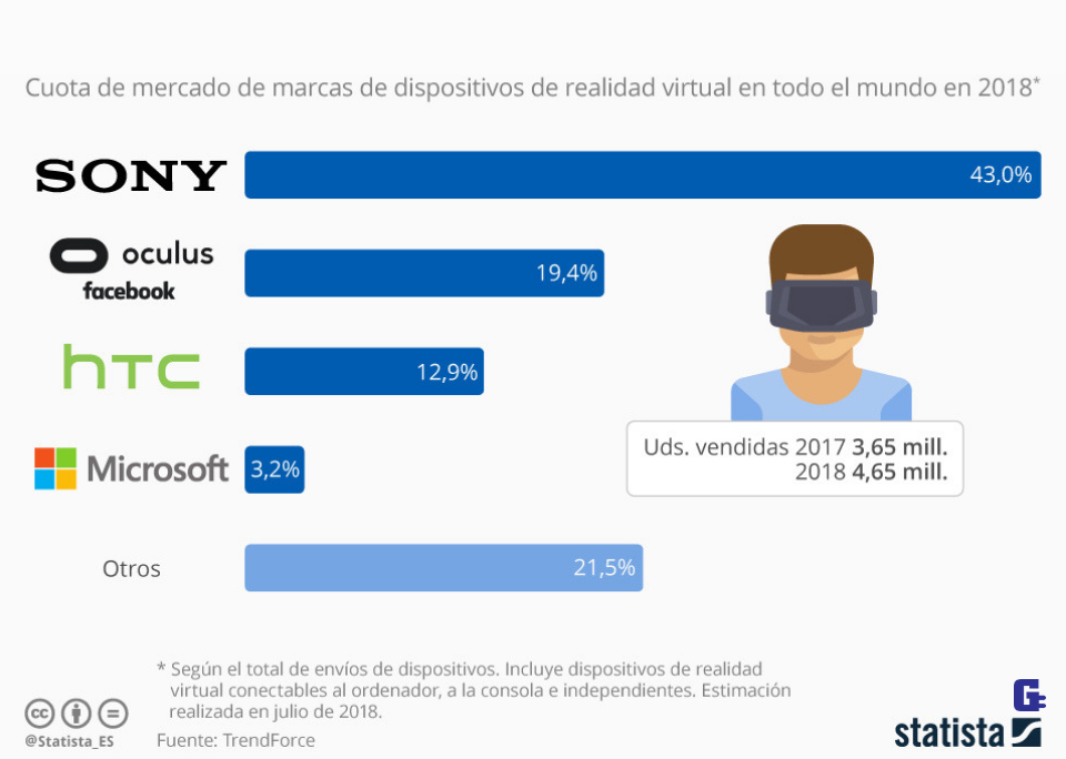 Parece que 2018 es el año grande de Sony en el segmento de la realidad virtual. Gracias a su dispositivo PlayStation VR, que se conecta a la consola Play Station 4, la japonesa acabará el año como fabricante de cascos de realidad virtual con una mayor cuota de mercado del mundo, según estimaciones de la consultora de tecnología TrendForce. En este sentido, Sony hizo público que hasta mediados de agosto ya ha habían vendido 3 millones de unidades.