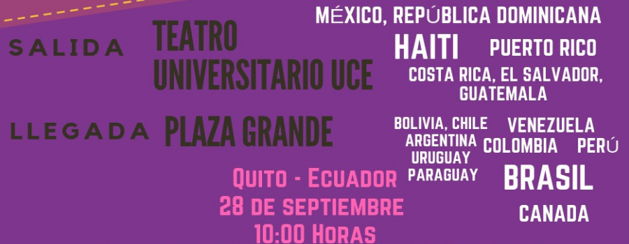 En el marco de este encuentro, se realizará el día viernes 28, una gran movilización de las mujeres de México, República Dominicana, Haití, Puerto Rico, Costa Rica, El Salvador, Guatemala, Venezuela, Colombia, Perú, Bolivia, Chile, Argentina, Uruguay, Paraguay, Brasil, Canadá y de las provincias del Ecuador a la Plaza Grande, para hacer la entrega de un manifiesto al señor Presidente de la Republica,. Lenin Moreno, con las demandas y propuestas que se consideran de obligatorio cumplimiento por parte de los gobiernos de América Latina y el Caribe. La marcha se inicia en el Teatro Universitario a partir de las 10 de la mañana.