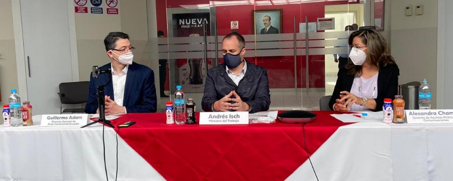 Arca Continental recibió al Ministro de Trabajo, Andrés Isch, en una de sus plantas de producción. La visita es parte del accionar que realiza la compañía de manera articulada con el Gobierno Nacional para impulsar la generación de empleo para contribuir con la reactivación económica, segura e incluyente del país.