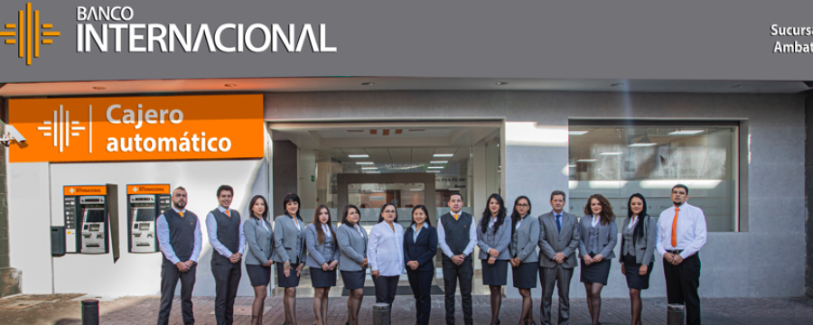 Banco Internacional pone a disposición del público, su sucursal Ambato ubicada en la calle Bolívar 1632 entre Martínez y Mera. Los horarios de atención son de lunes a viernes de 9:h00 a 16h00. La sucursal Ambato es parte de la red de atención de Banco Internacional que actualmente alcanza 88 puntos de atención, brindando sus servicios a cerca de 500.000 clientes a nivel nacional.