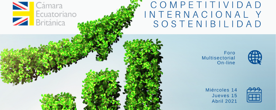 La Cámara Ecuatoriano Británica-BRITCHAM UIO- les invita a participar en el Foro "Competitividad Internacional y Sostenibilidad" que se llevará a cabo el miércoles 14 y jueves 15 de abril de 8h00 a 13h00 por medio de la plataforma Zoom y es de carácter gratuito. El evento cuenta con el apoyo de: Embajada Británica en Quito, ONU Mujeres Ecuador, Bid Invest, Pacto Global Red Ecuador y PRO ECUADOR UK. Además cuenta con el auspicio de: Banco Guayaquil, Deloitte, Corporación GPF, Sertecpet, Bolsa de Valores de Quito, Pronaca, Oriente Seguros, El Ordeño, La Fabril, Cervecería Nacional, Banco ProCredit, Unilever, Nirsa, Doptus, Empaque Verde, Coniprose, Expocorza, Bioexpor, Kiwa y Momentum Novum.