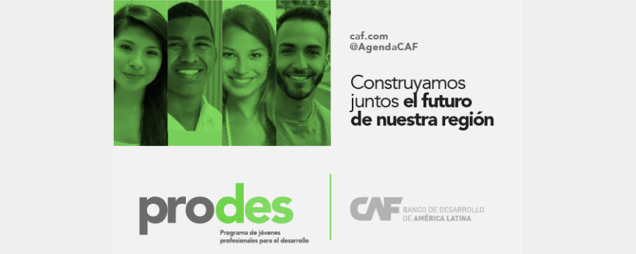 Con el propósito de brindar oportunidades de empleo y desarrollo a jóvenes profesionales, CAF -banco de desarrollo de América Latina- abre la convocatoria de su Programa de Jóvenes Profesionales para el Desarrollo (Prodes) para incorporar nuevos talentos. Las postulaciones se podrán realizar desde el 15 de febrero hasta el 30 de mayo de 2021. El Programa Prodes ofrece empleo a tiempo completo, con los beneficios de un organismo internacional en un entorno donde el talento contribuye al desarrollo de la región en equipos multidisciplinarios y con metodologías basadas en mejores prácticas, creatividad e innovación.