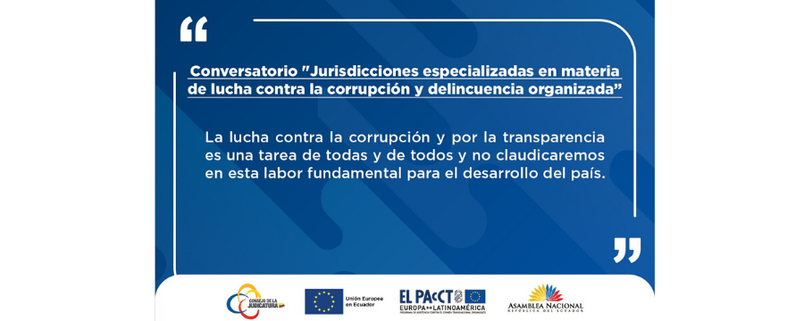 En su intervención, la doctora Maldonado recordó que la Judicatura y el PAcCTO, desde 2018, trabajan coordinadamente para enfrentar los mencionados delitos. Producto de esta labor, se expidió una guía para la actuación de los operadores de justicia ecuatorianos; y, en junio de 2019, realizaron el Seminario “Lucha contra la corrupción y delincuencia organizada en el Ecuador”, donde se analizaron posibles reformas legales para mejorar el juzgamiento de este tipo de actos. Con los insumos recopilados, el CJ elaboró y presentó, ante la Asamblea Nacional, un proyecto de reformas al Código Orgánico de la Función Judicial, para crear unidades judiciales, tribunales y salas penales especializadas, para el juzgamiento de delitos relacionados con corrupción y crimen organizado. El conversatorio se desarrolló en el marco del primer eje de gestión del CJ “Lucha contra la corrupción”. En él participaron también la Letrada del Tribunal Constitucional de España, Ana Belén Alonso; y, el magistrado experto en la Lucha Contra Delitos de Corrupción y Crimen Organizado de ese país, Ramón Sáez.