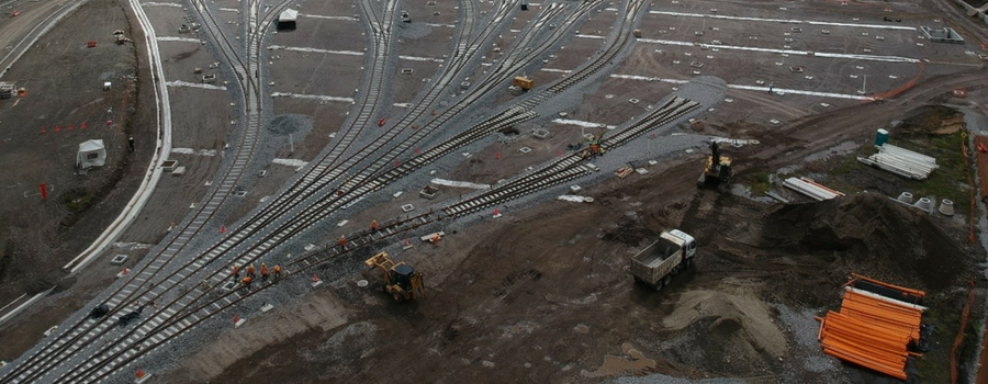 Próximamente se deberá entregar el patio de Talleres y Cocheras, zona en donde se albergarán las unidades de almacenamiento y mantenimiento de los trenes. Esta obra considera una superficie de 119.898 m2 con un túnel de acceso a cocheras de 590 m de extensión. En la actualidad, la construcción del túnel de acceso alcanza un avance del 80% y se está realizando el montaje de vías y trabajos en el interior de la nave taller.