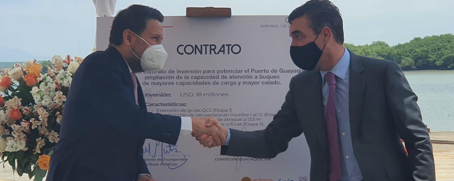 El viernes 2 de octubre de 2020, en las instalaciones de Contecon Guayaquil S.A (CGSA), con la presencia del Ministro de Transporte y Obras Públicas, Gabriel Martínez, se suscribió el Contrato de Inversión entre el Estado ecuatoriano y nuestra empresa, por un valor de $ 18 millones, con miras a repotenciar el Puerto Marítimo de Guayaquil “Libertador Simón Bolívar”, al amparo de la Ley Orgánica para el Fomento Productivo, Atracción de Inversiones, Generación de Empleo y Estabilidad y Equilibrio Fiscal.