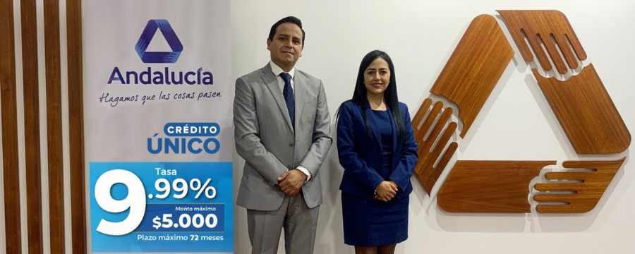 Cooperativa Andalucía presenta el nuevo “Crédito Único, como caído del cielo”, diseñado para brindar mayores facilidades a sus socios y clientes, así como contribuir a la reactivación económica del país, con tasas de interés reducidas y condiciones de fácil acceso. A través de este producto, las personas de entre 24 y 79 años podrán solicitar hasta $5.500 para consumo o microcrédito, sin garante ni firma del cónyuge, con hasta 72 meses de plazo, una tasa de interés del 9,99% y desembolso inmediato.