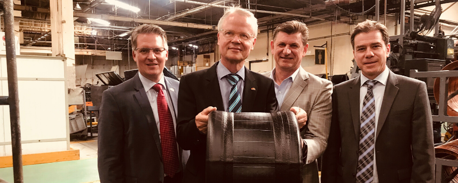 Continental Tire Andina, empresa con más de 60 años de trayectoria en el país, recibió en su planta de producción de Cuenca al embajador de Alemania en Ecuador, Philipp Schauer, y al cónsul honorario de Alemania en Cuenca, Thomas Klate, quienes realizaron un recorrido guiado para conocer los procesos de producción y comercialización de los neumáticos en el país.