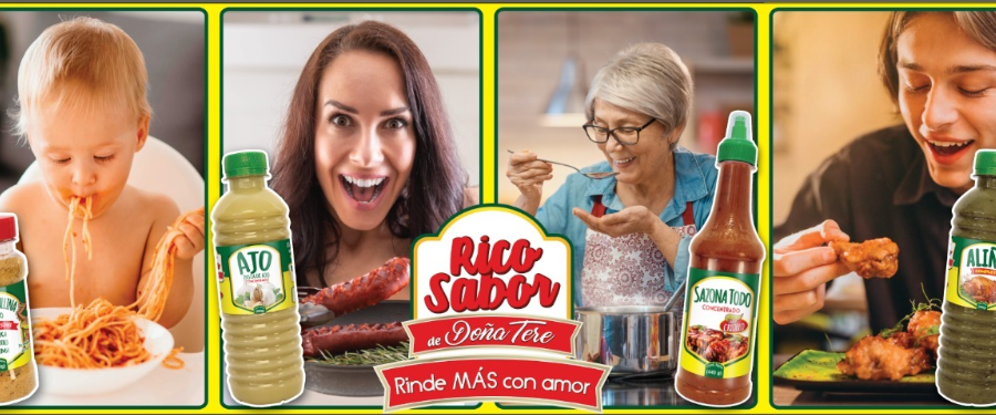 El objetivo es ofrecer productos con sabores que evoquen las recetas familiares, con opciones de consumo de alta calidad. Los productos del portafolio de Rico Sabor® de Doña Tere son: Caldo de Gallina en polvo “La Campesina”; Aliño Completo; Pasta de Ajo y Sazona Todo Concentrado.