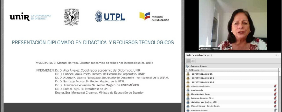 El Ministerio de Educación del Ecuador (MINEDUC), junto a la UNIR, la Universidad Técnica Particular de Loja (UTPL) y la Universidad Nacional Autónoma de México (UNAM) han presentado un programa de formación gratuita destinado a 2.000 maestros fiscales de escuelas y colegios públicos del área urbana y rural del país. El programa de ‘Diplomado en Recursos Didácticos y Tecnológicos’ permitirá a los docentes mejorar su manejo de técnicas de enseñanza-aprendizaje y de materiales digitales, apoyados en el uso apropiado de diversas herramientas. Su finalidad es promover aprendizajes significativos, a través de estrategias concretas en materia de cultura digital, enseñanza de lenguaje español, y ciencias naturales y matemáticas. Los beneficiarios de las becas obtendrán el Diploma en Recursos Didácticos y Tecnológicos. La duración del programa será de seis meses y el curso se impartirá a partir del próximo 8 de junio a través de clases virtuales en tiempo real. En una primera fase participarán 200 docentes y después se irá sumando el resto de los participantes, en grupos, hasta alcanzar los 2.000 asistentes.