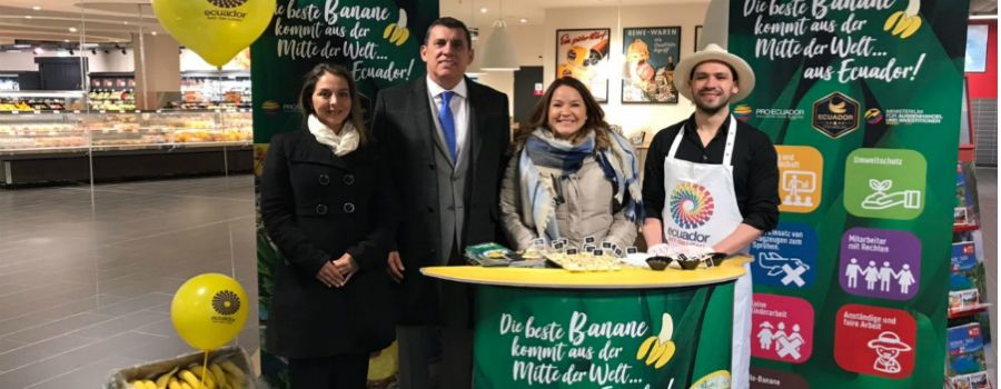 Hace pocos días culminó uno de los eventos más esperados, Fruit Logística Berlín, donde Ecuador alcanzó más de 12 millones en estimaciones de negocios. Pro Ecuador junto a 8 empresas ofertaron lo mejor del país en banano y frutas no tradicionales tales como uvilla, piña y pitahaya. Esta vitrina tuvo lugar en Berlín- Alemania, con una cifra récord de 3.100 expositores de 84 países. En este marco se realizaron degustaciones de banano ecuatoriano dentro de 3 prestigiosos supermercados de Berlín, en diferentes presentaciones como banano fresco, en smoothies y combinado con avena, nibs de chocolate, entre otros ingredientes.