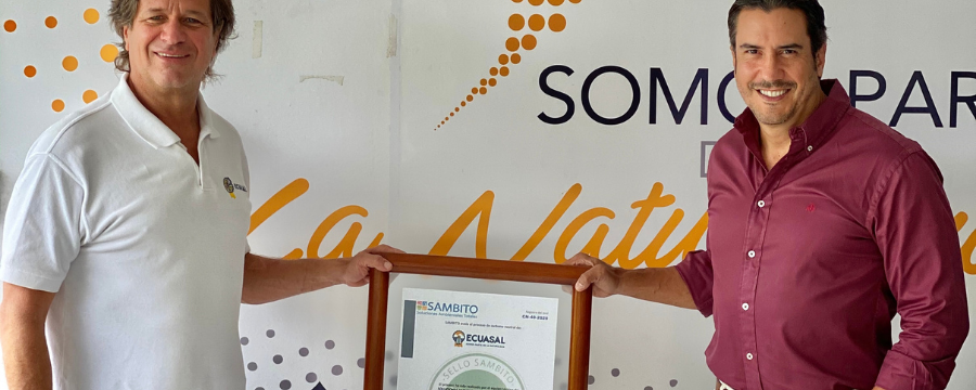 Ecuasal recibió la Certificación Carbono Neutral por parte de la consultora ambiental Sambito, convirtiéndose así, en la primera refinería de sal de mar de Latinoamérica que mide la huella de carbono.