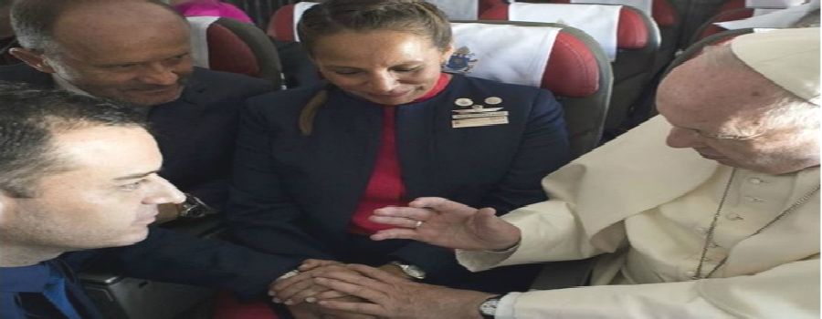 El día de hoy 18 de enero, en el vuelo que trasladaba al Papa durante su visita a Chile, han contraído matrimonio el señor Carlos Ciuffardi Elorriaga (41 años) y la señora Paula Podest Ruiz (39 años), ambos tripulantes de cabina de LATAM. Los tripulantes se acercaron al Papa para que bendiga sus anillos y compartieron su historia con el Sumo Pontífice, quien se ofreció a casarlos. Sus testigos fueron Ignacio Cueto, presidente del directorio del Grupo LATAM Airlines y Monseñor Mauricio Rueda, siendo su acta de matrimonio una hoja en blanco que encontraron en el avión.