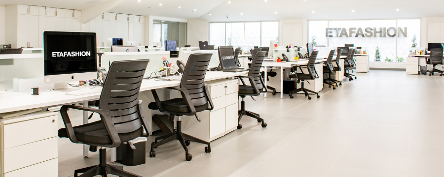 Etafashion inauguró sus nuevas oficinas en la ciudad de Quito. La nueva propuesta de trabajo comprende espacios abiertos donde se prioriza el trabajo grupal. En más de 1.000 metros cuadrados, se ha distribuido salas de reuniones, espacios de creación y de capacitación que han sido diseñadas con cristal. Al trabajar con textiles, la luminosidad y temperatura es de vital importancia para escoger los colores, texturas, apliques y detalles adecuados de cada prenda. Los puestos de trabajo son ergonómicos y las instalaciones cuentan con todos los requisitos de normativa técnica, administrativa y de seguridad, como son los rociadores contra incendios, rutas de evacuación y más.