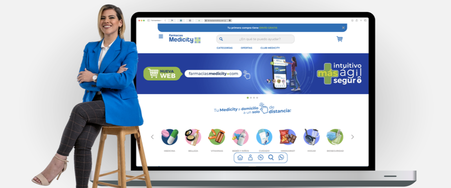 La nueva página web de Farmacias Medicity integra tecnología, servicio de excelencia y amplia cobertura, inspirada en el concepto customer centricity que coloca al cliente como prioridad y en el centro del negocio de las empresas. Entre las nuevas funcionalidades se encuentran: One click checkout (opción de compras sin creación de usuarios), búsqueda predictiva de productos, nueva pasarela de pagos (Nuvei-Paymentez), nueva plataforma SaaS (para agilizar tiempos de carga y minimizar errores en transacciones), venta fraccionada de productos, navegación optimizada y mejoras en las fichas de productos.