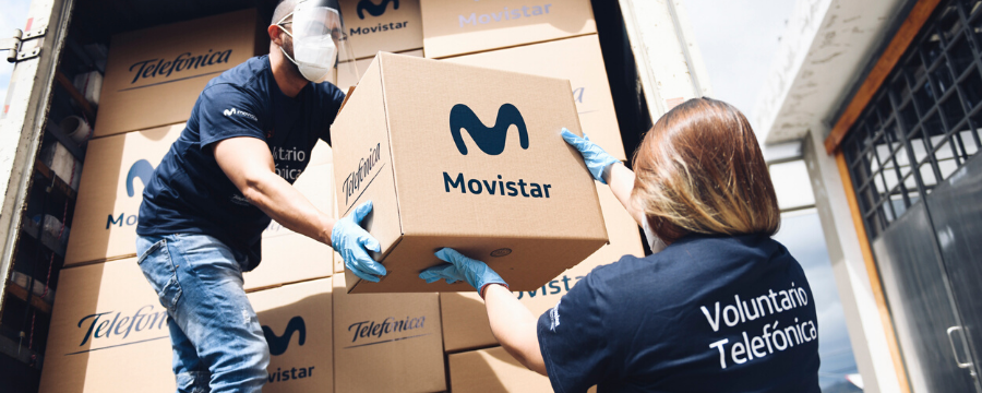 Telefónica (con su marca Movistar) y Fundación Telefónica estamos colaborando con recursos humanos, económicos y digitales en una de las mayores movilizaciones de la historia del país. El pasado jueves 4 de junio, se realizó una donación de 29.000 mascarillas KN95 y 18.000 trajes de protección contra riesgo Just Safety y A1 (9.500 trajes ya otorgados y 8.500 más llegarán el 29 de junio) que serán distribuidos, a través de la Vicepresidencia de la República, para las diferentes casas de salud que los requieran.