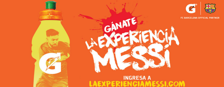 La promoción “La experiencia Messi” de Gatorade, invita a los consumidores a probarse ellos mismos y entrenar como el astro del fútbol, Lionel Messi. El premio de la promoción es una real experiencia al estilo del emblemático jugador del FC Barcelona, para tres ganadores que incluye: