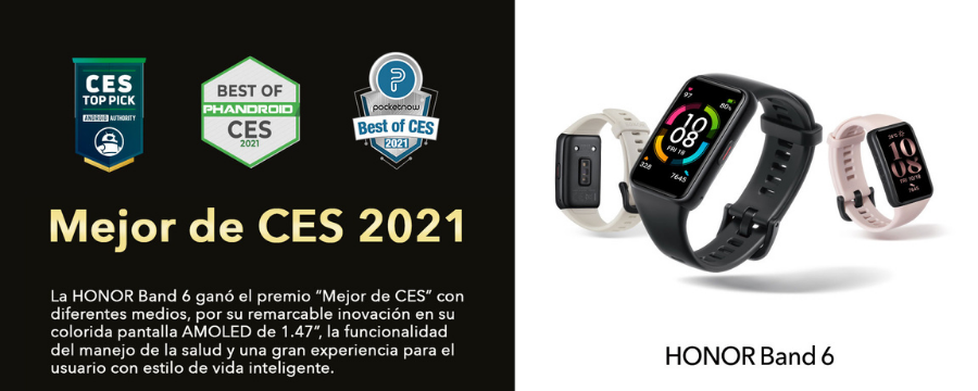 Bajo el propósito de brindar productos premium capaces de fortalecer y motivar a la gente, Honor presenta en el mercado ecuatoriano la nueva Band 6, ganadora del premio “Mejor de CES”, gracias a su remarcable innovación; el reloj inteligente cuenta con una moderna pantalla Amoled de 1.47 pulgadas, que posibilita monitorear funciones de ejercicio y salud, tiene una batería de larga duración (24 horas) lo que permite una fusión perfecta entre la innovación y la elegancia tecnológica.