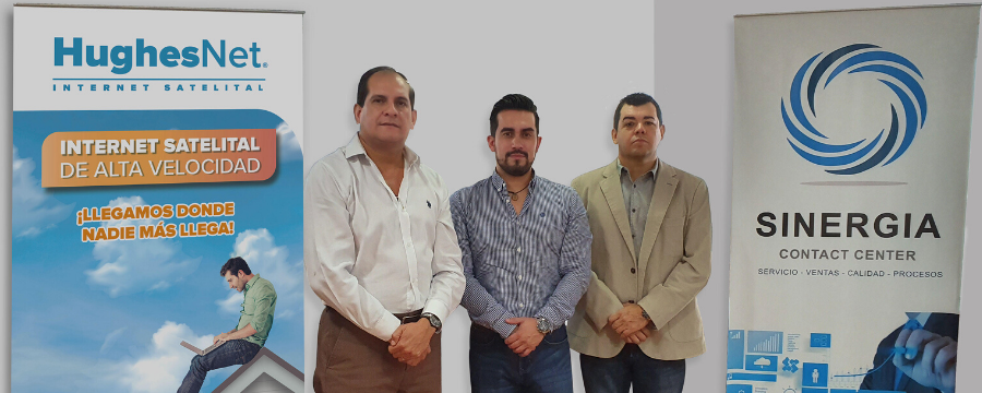 HughesNet® realizó una alianza estratégica con Sinergia para implementar su servicio de call center. El acuerdo fue suscrito con el fin de contar con un canal adicional, para atender los requerimientos de los clientes de manera directa. Para acceder al servicio se establecieron dos mecanismos: línea móvil de contacto para que el usuario pueda llamar (0999 539999) o formulario de registro de datos en la página web www.internetsatelital.ec para que un asesor se contacte con el usuario.