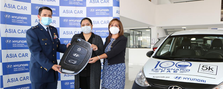 Hyundai, junto a la Fuerza Aérea Ecuatoriana, realizó la entrega del auto Hyundai Grand i10 HB a la ganadora del sorteo efectuado en la carrera atlética "Centenario FAE 5k", en beneficio de la Fundación de Asistencia Educativa Social Aérea (FAESA).