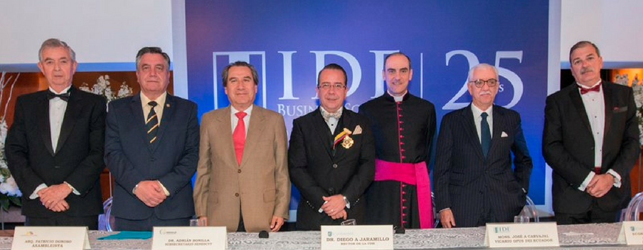 En una sesión solemne el IDE Business School celebró sus Bodas de Plata con la presencia de más de 200 invitados entre nacionales, extranjeros, autoridades y egresados de la institución. También contó con la asistencia de una decena de decanos y profesores de escuelas de negocios miembros de la red académica mundial a la que pertenece el IDE.