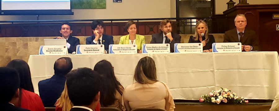 La Unión Europea en Ecuador en colaboración con la Universidad San Francisco de Quito (USFQ) y la Corporación de Simulaciones Académicas (Corsiac) celebraron el X aniversario del Modelo Unión Europea (MUE) 2019. La iniciativa, que tuvo lugar en la Universidad San Francisco de Quito, convocó a alrededor de 200 estudiantes de colegios y universidades, quienes representaron a las diferentes instituciones que pertenecen a la Unión Europea.