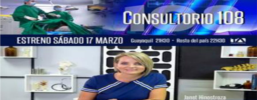 Janet Hinostroza, reconocida productora y conductora de TV llegará a las pantallas de nuestro país con Consultorio 108, programa médico educativo e informativo que busca dar a conocer las innovaciones médicas que se practican en nuestro país y demostrar cómo éstas, cambian la vida de personas reales que sufren diversas patologías. El estreno será el próximo sábado 17 de marzo en horario de Guayaquil 21:30 y el resto del país 22:30. Teleamazonas será el canal que presentará el importante programa a nivel nacional. De la mano de Janet Hinostroza estará el doctor Patricio Toscano; Médico graduado de la Universidad Central del Ecuador y Cirujano Estético, quien aportará al programa su visión científica y médica.