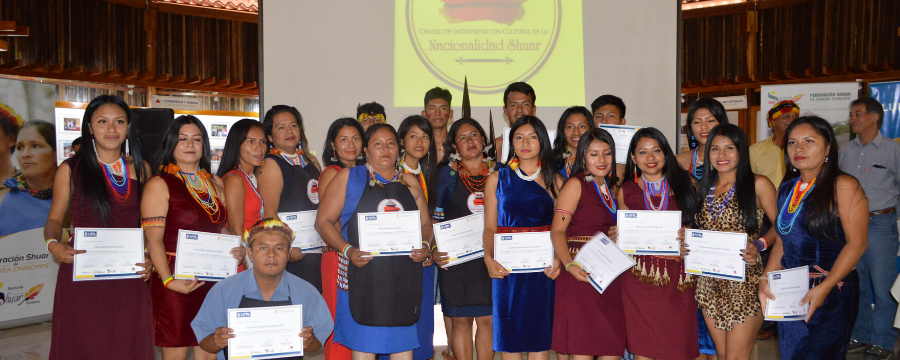 El pasado 15 de diciembre de 2019 se realizó la entrega de certificados a jóvenes de comunidades de la nacionalidad Shuar de la provincia de Zamora Chinchipe que participaron en los cursos teóricos y prácticos de gastronomía: “Alimentos y Bebidas Shuar” y “Guías Locales”.