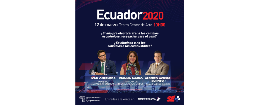 Los máximos exponentes de política, economía y deportes estarán presentes en la primera edición del Congreso Ecuador 2020; evento que congregará a Jaime Nebot, Juan Sebastián Roldán, Antonio Solá, Iván Ontaneda, Vianna Maino, Francisco Egas, Miguel Ángel Loor, Alberto Acosta Burneo, Carlos Vera y Diego Arcos en un mismo escenario en el que se encargarán de analizar los diferentes panoramas que enfrenta nuestro país en este 2020.