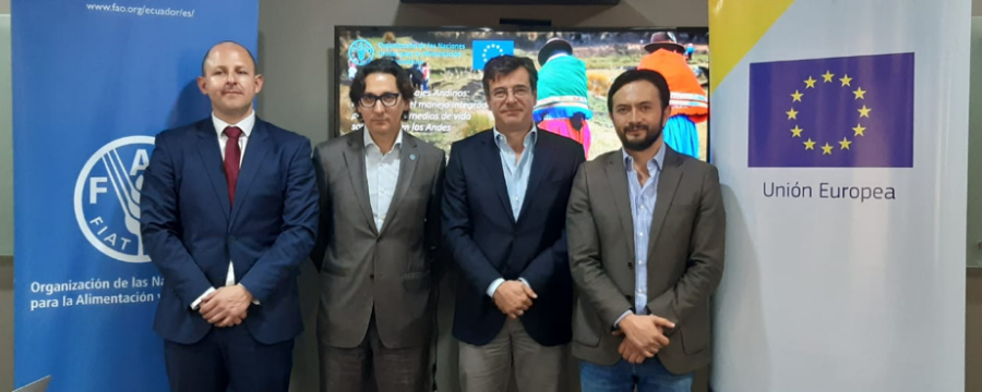Para impulsar la producción sostenible y la conservación en los Andes del Ecuador fue presentado en Quito el proyecto “Paisajes Andinos: Promoción del manejo integrado del paisaje para medios de vida sostenibles en los Andes ecuatorianos”. Esta es una iniciativa financiada por la Unión Europea (UE) que será implementada por la Organización de las Naciones Unidas para la Alimentación y la Agricultura (FAO), en coordinación con la Secretaría del Agua, el Ministerio de Agricultura y Ganadería (MAG) y el Ministerio del Ambiente del Ecuador (MAE).