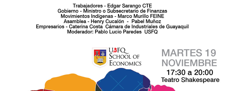 La Escuela de Economía de la Universidad Sn Francisco de Quito (USFQ) invita a la comunidad al conversatorio “Los ecuatorianos sí podemos dialogar: trazar una cancha juntos”, evento gratuito que se realizará este martes 19 de noviembre de 17h30 a 20h30, en el Teatro Shakespeare de la universidad.