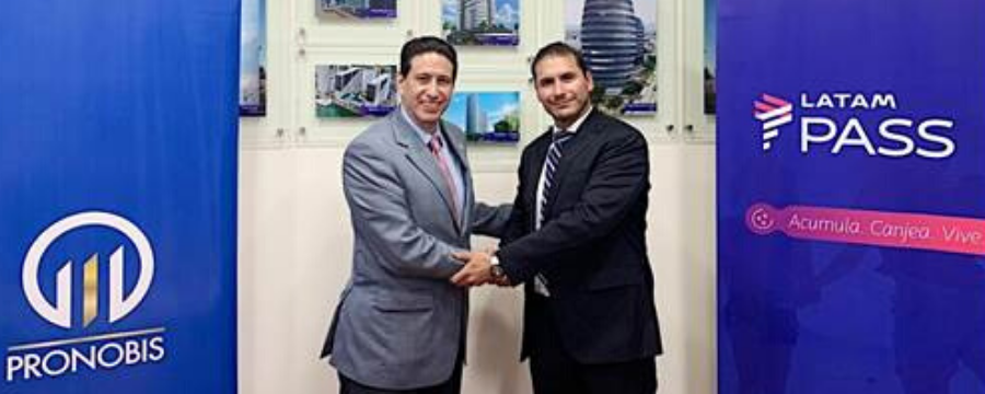 Latam Airlines Ecuador y Promotores Inmobiliarios Pronobis, realizaron la firma de un convenio, por cuatro años, en el que por cada $1,00 cancelado a la inmobiliaria al momento de la firma de la compraventa de alguno de los proyectos seleccionados, el cliente recibirá inmediatamente 1 Milla Latam Pass. Estas millas son acumulables y pueden ser canjeadas por excelentes beneficios.