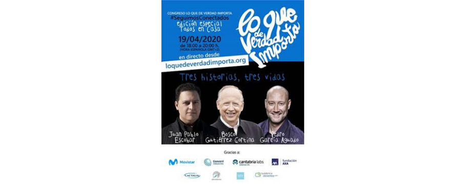 Después de más de 12 años celebrando congresos presenciales en España y en otros siete países, la Fundación Lo Que De Verdad Importa celebrará una edición especial online, para hacer llegar al mundo tres increíbles historias que ayuden a superar la difícil situación en la que nos encontramos debido a la crisis del COVID-19. El evento podrá seguirse de forma gratuita accediendo a loquedeverdadimporta.org y contará con tres testimonios de experiencias extremas, superadas gracias a valores como la resiliencia, la esperanza, el amor y la valentía.