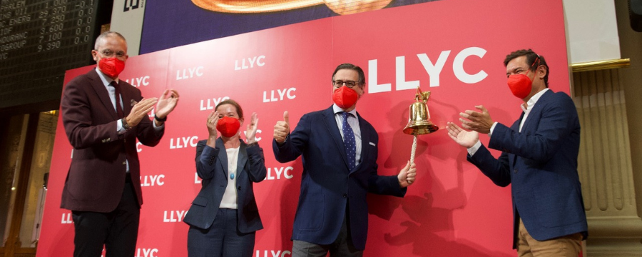 El evento de toque de campana se ha celebrado siguiendo estrictas medidas a causa de las restricciones sanitarias impuestas por la pandemia de Covid-19 y ha reunido a 70 personas en el Palacio de la Bolsa de Madrid. LLYC destinará los fondos captados a través de su ampliación de capital a financiar parte de este plan de negocio, con el que persigue duplicar su negocio en los próximos cuatro años y alcanzar unos ingresos de 100 millones de euros.