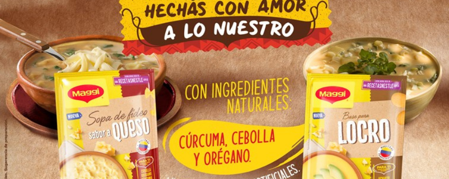 Maggi® lanza sus nuevas Sopas “Hechas con amor a lo nuestro”, inspiradas en los sabores locales del Ecuador. Este nuevo portafolio está conformado por sopa de fideos con queso y una deliciosa base para locro. Adicional a su delicioso sabor, estas nuevas variedades vienen con empaques reducidos en sus tamaños con el objetivo de disminuir el desperdicio y el impacto al medio ambiente. Esta acción es parte de la iniciativa de Nestlé que enmarca nuestro compromiso y acciones para ayudar a la preservación el planeta.