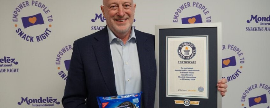 La compañía multinacional de snacks Mondelēz International logró un Récord Guinness Mundial por la mayor cantidad de personas haciendo el clásico ritual de “gira, sumerge y saborea”, con su galleta Oreo. El récord fue alcanzado el jueves 30 de enero a las 9:30 a.m. cuando trabajadores de la compañía hicieron -de manera simultánea- el reto de sumergir la galleta, en más de 55 locaciones, distribuidos en 32 países, estableciendo un nuevo título Guinness World Records con la participación de 5.066 personas. Esto, como parte de un evento en vivo en el que estaban conectados todos los trabajadores alrededor del mundo.