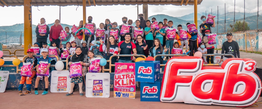 El sector de la Ferroviaria de Quito, fue uno de los primeros puntos de donación. Más de 45 niños recibieron productos de la marca (detergente FAB) útil para su día a día; por otra parte, la fundación Fútbol Más, encargada de promover el desarrollo de resiliencia en niñas, niños y adolescentes, recibió con alegría un show de magia y Boletín de prensa Ecuador, 15 de Noviembre 2022 fantasía adicional del detergente que será usado para lavar los uniformes de quienes forman parte de esta fundación.