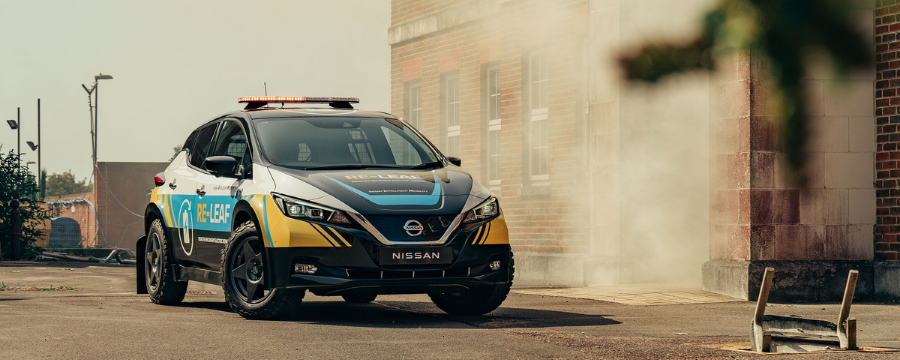 Nissan develó un prototipo de vehículo de emergencia 100 % eléctrico, diseñado para ofrecer una fuente de alimentación móvil ante desastres naturales o emergencias climáticas. Este prototipo denominado RE-LEAF se basa en el Nissan LEAF, el primer vehículo eléctrico de producción masiva en el mundo.