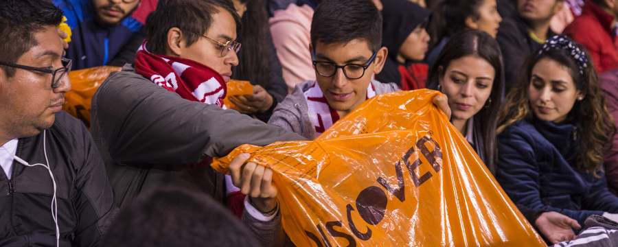 El partido Liga de Quito versus Fénix de Uruguay, en la Noche Blanca, fue el escenario para la iniciativa Ola Discover. En el minuto 70 del partido jugado en el Estadio Rodrigo Paz Delgado, este sábado 25 de enero, los hinchas de Liga de Quito recibieron una funda biodegradable para la recolección de los desechos. Así, el primero de cada fila tomaba la funda y la pasaba hasta la última persona; movilizándolas puesto por puesto hasta llenarlas.