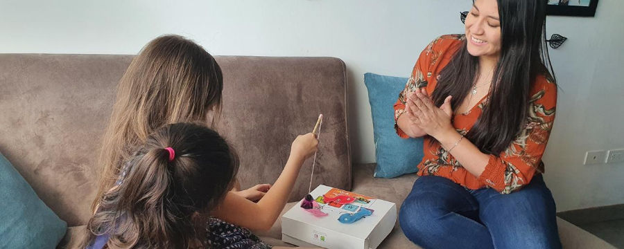La iniciativa también benefició a un emprendimiento ecuatoriano, dedicado a la creación de cajitas recreativas que favorecen al desarrollo de habilidades motrices y creativas en los niños.