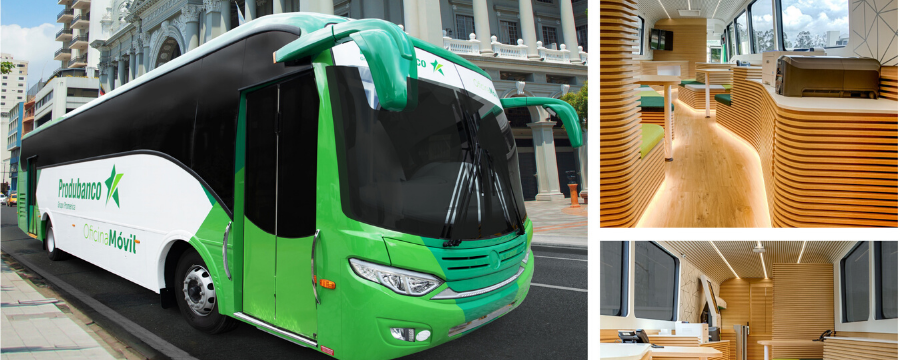 Produbanco implementó su primera oficina móvil que se movilizará a diferentes puntos de la ciudad de Guayaquil para acercar los servicios financieros a la ciudadanía. La oficina también ofrece asesoría financiera personalizada y canales de atención digitales para realizar transacciones. En esta primera etapa, la oficina móvil de Produbanco se trasladará hacia diversos puntos de la ciudad para brindar servicios financieros en lugares como ferias, eventos públicos, instituciones educativas y a varias empresas clientes de Produbanco. Esta iniciativa nació de un concurso interno de innovación que la entidad promovió entre sus colaboradores, con el objetivo de desarrollar nuevos conceptos de servicio, que se acoplen a las nuevas necesidades de los clientes.