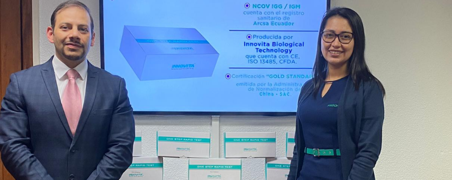 Frisonex realiza la importación de 655.000 pruebas que están siendo distribuidas a instituciones de salud y empresas a nivel nacional, entre hospitales, clínicas y laboratorios clínicos. Las empresas que cuenten con un Departamento de Seguridad y Salud Ocupacional que cumpla con los protocolos respectivos para el manejo adecuado de la prueba, también podrán aplicarlas, siempre que las realice solo personal médico. La prueba rápidas importadas son las Ncov Igg / Igm de la empresa internacional Innovita Biological Technology, las mismas que cuenta con el registro sanitario local # 8299-DME-0320 emitido por ARCSA Ecuador, además, de la certificación GOLD STANDARD, emitida por la Administración de Normalización China-SAC.