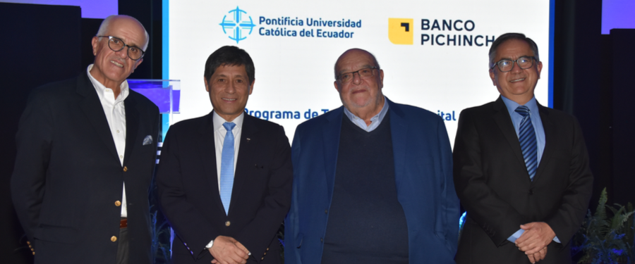 La Pontificia Universidad Católica del Ecuador (PUCE) y Banco Pichincha presentaron el Programa de Transformación Digital en Banca y Finanzas que busca formar profesionales capacitados en temas financieros y bancarios.