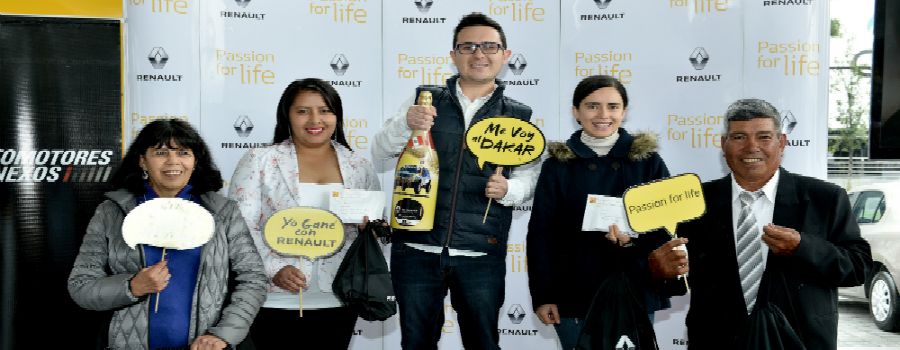 La marca francesa Renault realizó la entrega oficial de los premios a los ganadores del sorteo de la campaña “X-Mas Renault 2017. El sorteo se realizó en el concesionario Renault, ubicado en la Av. Eloy Alfaro, donde estuvieron presentes, representantes de la marca junto a la notaria quien oficializó la entrega de los premios a sus diferentes ganadores. ”. El primer premio fue otorgado a Marco Antonio Sánchez quien disfrutará de un viaje con todos los gastos pagados para dos personas a la final del Dakar 2018 que se realiza en Córdoba – Argentina del 18 al 21 de enero 2018.
