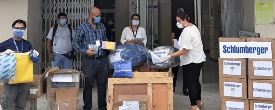Schlumberger y con operaciones conjuntas con Petroamazonas a través de la unidad Schlumberger Production Management (SPM) en las áreas de Shushufindi, Auca y Libertador, entregó insumos hospitalarios (batas, sabanas desechables para camilla y cama, gorros quirúrgicos, cubrezapatos, mascarillas y overoles tyvek) y 1000 protectores faciales al Comité de Emergencia Provincial de Orellana. La entrega fue realizada este viernes 24 por el gerente de la Base de Coca de Schlumberger, Julio Kohatsu, al Dr. Juan Pablo Cevallos del COE Provincial en Coca, quien será el encargado de la distribución en las entidades hospitales de la provincia y demás organismos que están en la primera línea de trabajo para enfrentar el COVID-19.