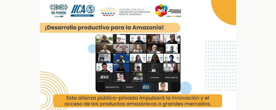 El acto oficial para la firma del convenio, realizado por vía telemática, contó con la presencia del Sr. Jackson Torres, viceministro de Producción e Industrias del Ministerio de Comercio Exterior, Inversiones y Pesca; María De Los Ángeles Rodríguez, viceministra de Economía y Finanzas; Alex Hurtado Borbúa, presidente del Consejo de la Amazonía y consejero presidencial para Asuntos Amazónicos; Julia Landázuri, secretaria técnica de la Amazonía; Rodolfo Campos Arceu, representante de la IICA en Ecuador; Andrés Zurita, director ejecutivo de la Alianza para el Emprendimiento e Innovación -AEI y representantes de la empresa privada.