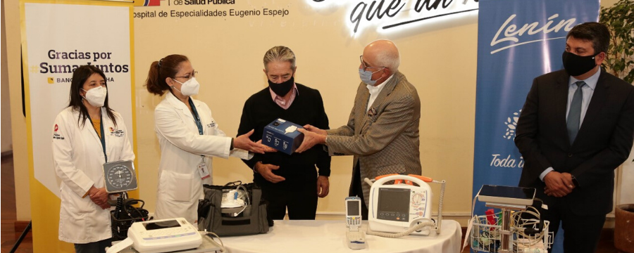 El fideicomiso #SumarJuntos, en coordinación con el Ministerio de Salud Pública, entregó 117 equipos médicos a los hospitales Eugenio Espejo, Pablo Arturo Suárez, Enrique Garcés, General Calderón y de las Fuerzas Armadas, con el fin de ampliar la capacidad de diagnóstico clínico y tratamiento de pacientes críticos con COVID-19, como parte de su gestión y compromiso por combatir la expansión de esta pandemia en el Ecuador, así como dejar un legado permanente de servicio a la sociedad.