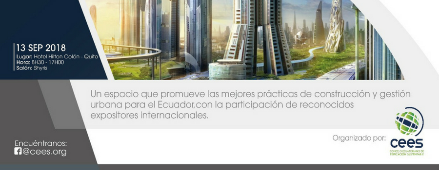 De la mano de expertos nacionales e internacionales, el próximo 13 de septiembre de 2018, el Concejo Ecuatoriano de Edificación Sustentable (CEES) llevará a cabo el Foro Internacional de Ciudades Inteligentes y Sustentables. Dicha entidad cuenta con una amplia trayectoria y experiencia en el ámbito de la construcción, hace pocas semanas realizó la entrega del Centro de Convenciones de la Ciudad de Quito, catalogado como el primer edificio público construido bajo parámetros de edificación sustentable.